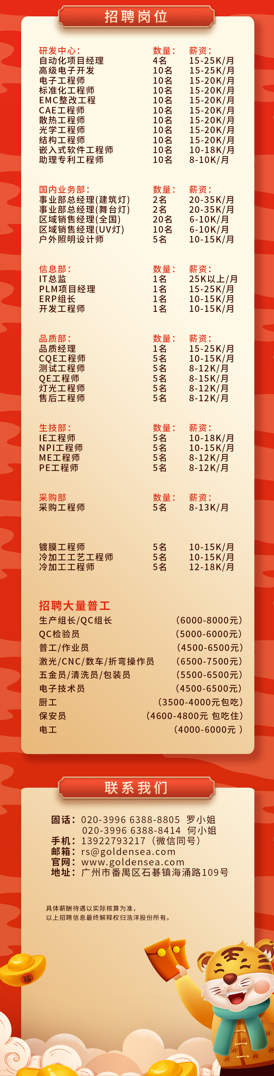 極具競(jìng)爭(zhēng)力福利體系 本企業(yè)著落番禺市蓮路,地鐵旁,交通方便,擁有舒適的辦公環(huán)境,現(xiàn)代化的辦公、生產(chǎn)設(shè)備。 公司舒適優(yōu)雅的員工宿舍、整潔明亮的自助式飯?zhí)茫魇矫牢稘M足每個(gè)員工的需求。 企業(yè)以人為本,為員工購買社會(huì)保險(xiǎn),住房公積金。特設(shè)立企業(yè)愛心基金,專為有困難的員工提供援助。 公司成立了黨、工、團(tuán)委員會(huì),公司讓員工跟隨公司的發(fā)展,參與到各項(xiàng)黨、工、團(tuán)活動(dòng)。 員工享受各法定節(jié)假日,享受節(jié)日福利。公司定期組織豐富多彩的企業(yè)文化活動(dòng),如年度表彰暨文藝匯演、羽毛球賽、辯論賽、棋牌賽、籃球賽、年度旅游、員工生日會(huì)等各項(xiàng)文化活動(dòng)。讓員工有“如家”的感覺。