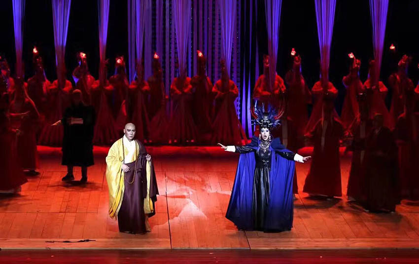 歌劇《鑒真東渡》的導(dǎo)演,國(guó)家一級(jí)編導(dǎo)邢時(shí)苗老師介紹,歌劇《鑒真東渡》原定是12月22日、23日在日本的奈良首演。后來(lái)有人建議,能不能在東京演出一場(chǎng)。于是,他就在東京尋找合適的演出場(chǎng)所。恰巧有個(gè)合適的劇院,20日那天有檔期。簽下演出合同之后,邢時(shí)苗老師才發(fā)覺,在1200多年前,鑒真成功東渡到日本的日期,恰恰就是12月20日。這是一次巧合,更是對(duì)鑒真大師的致敬。
