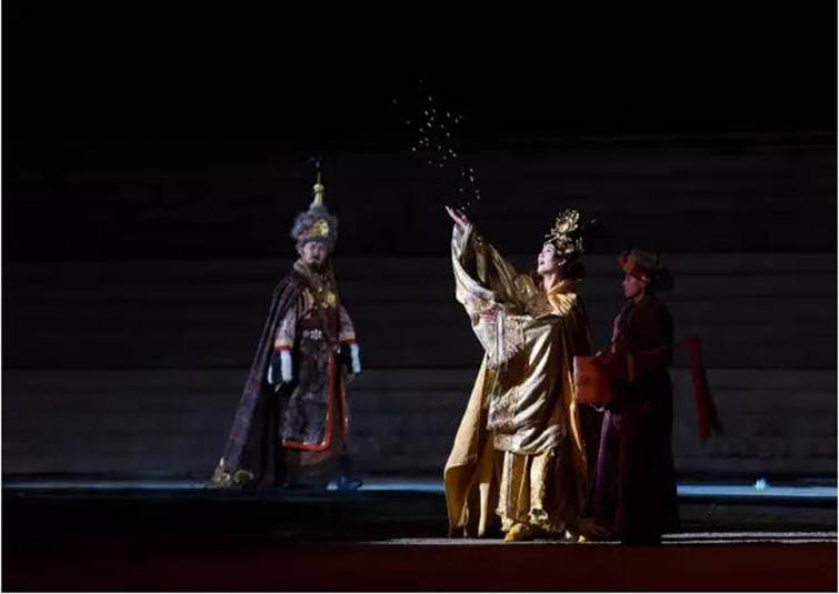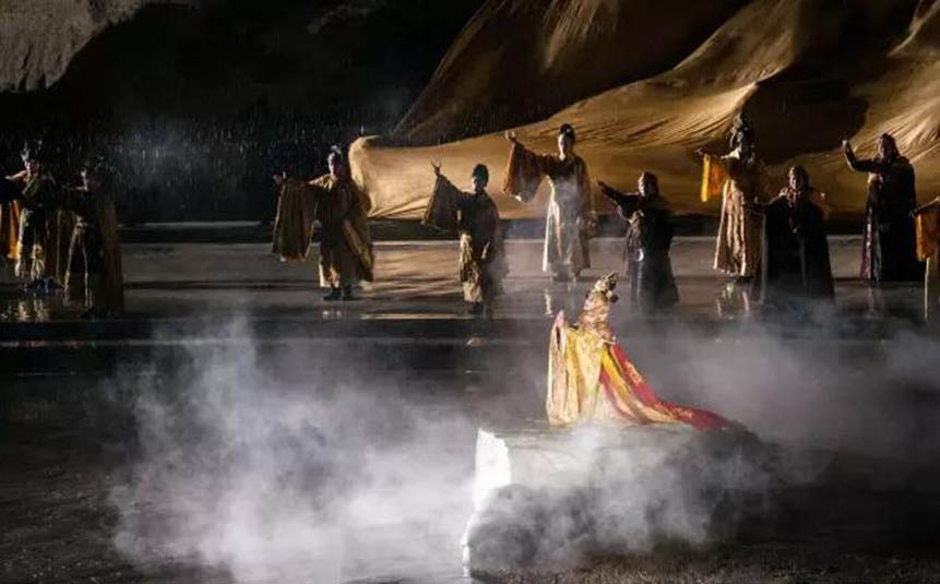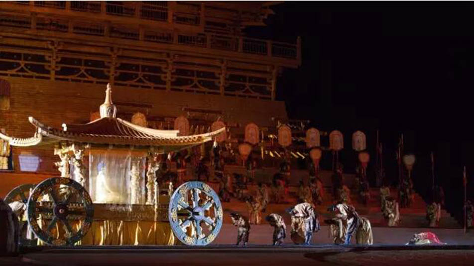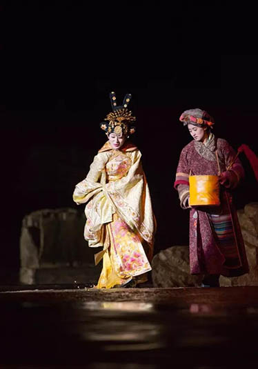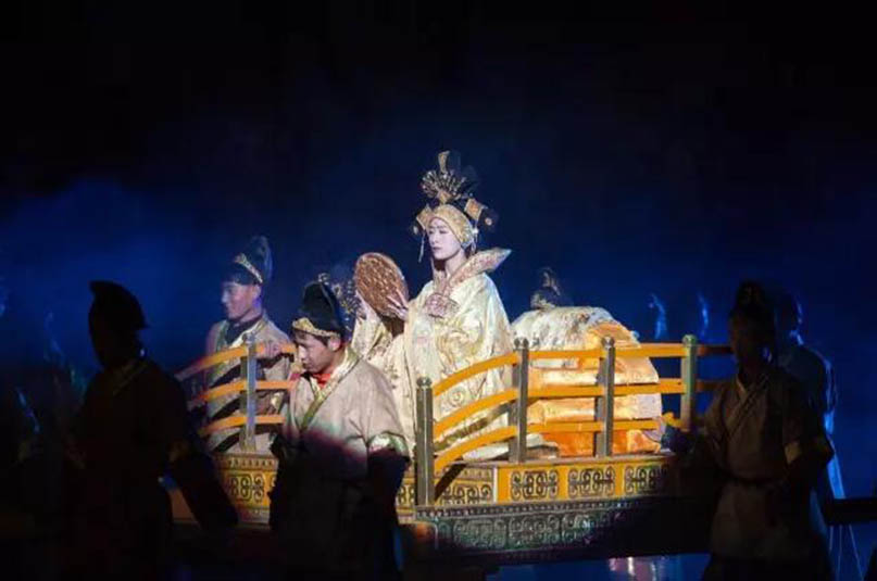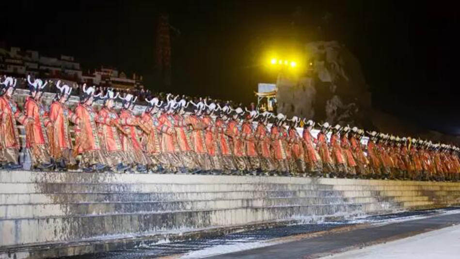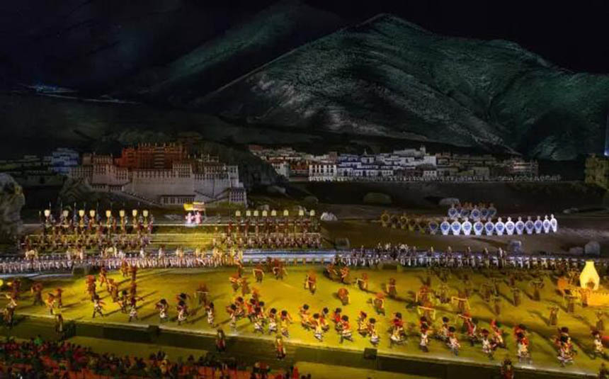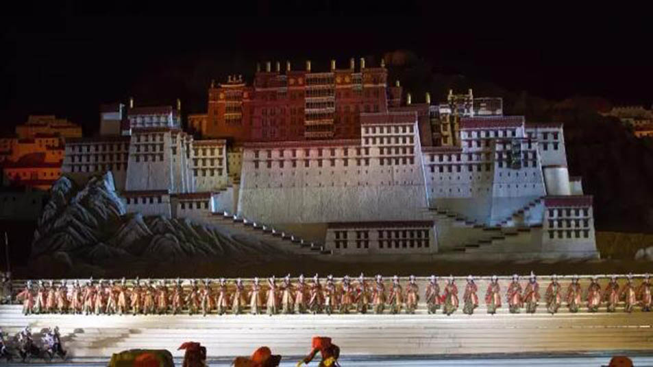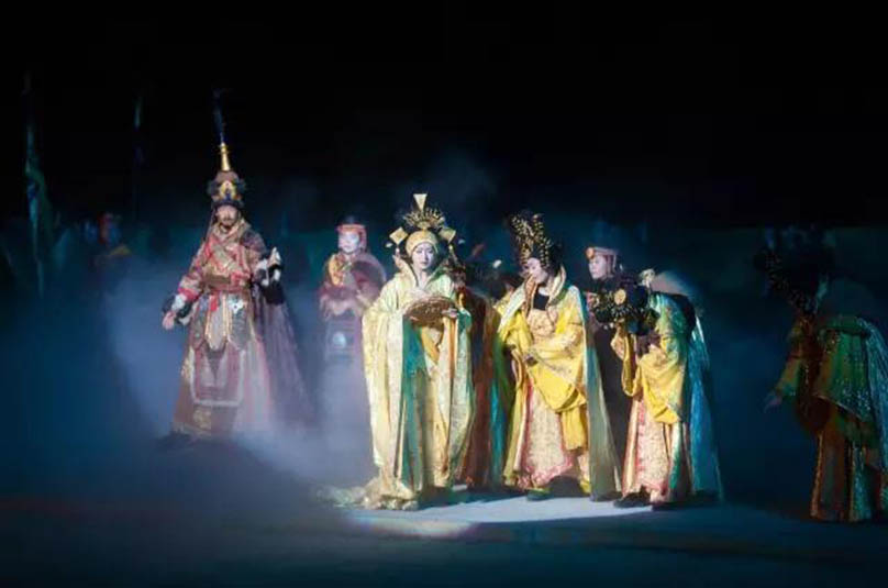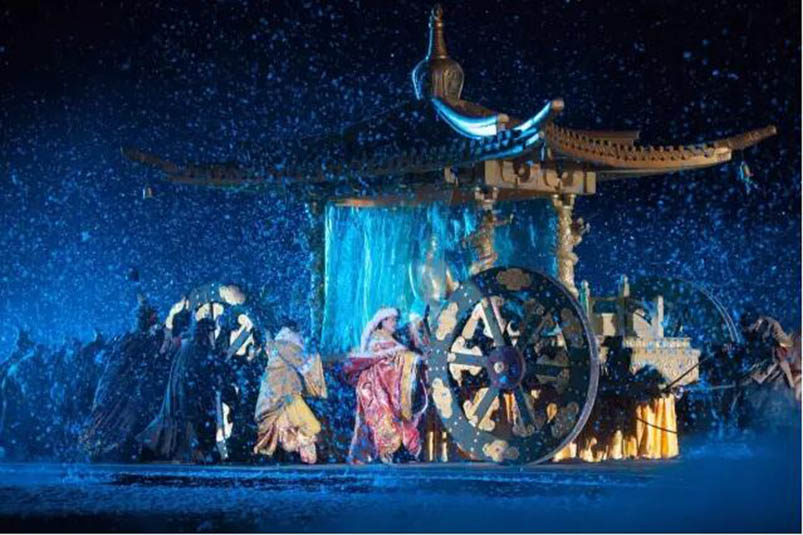 大型藏族實(shí)景劇《文成公主》主要講述文成公主入藏歷經(jīng)艱難的征途和曲折起伏的心路歷程,演繹大唐盛世的愛情傳奇,傳唱漢藏和美的動(dòng)人史歌。該作品分為“大唐之韻”、“天地梵音”、“藏舞大美”、“藏舞大美”及“藏舞大美”五幕,深度融入漢藏歷史文化、民族風(fēng)俗、自然景觀等,引入了大唐歌舞和流傳久遠(yuǎn)的藏舞、藏戲、佛號(hào)念唱等,通過人工舞臺(tái)與自然山水的結(jié)合,用高科技的手段呈現(xiàn)非物質(zhì)文化遺產(chǎn),把戲劇、音樂、舞蹈和現(xiàn)代舞美手段融為一爐,構(gòu)成華美樂章。