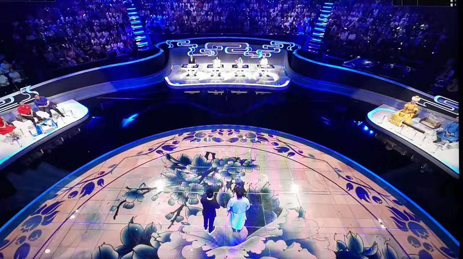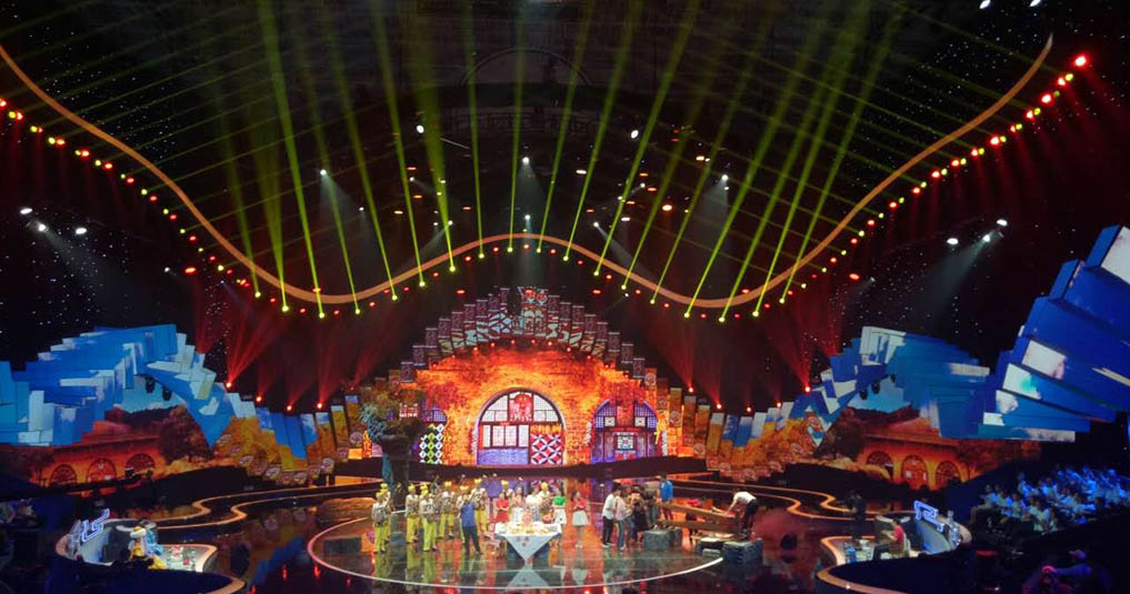 節(jié)目《魅力中國城》中“大眼睛”舞美、連貫飄帶屏、舞臺地面LED上層的玻璃質(zhì)感與舞臺視覺的完美配合,使舞臺的舞美影像畫面散發(fā)著濃郁城市特色,為觀眾帶來了新的、豐富的視覺層次。