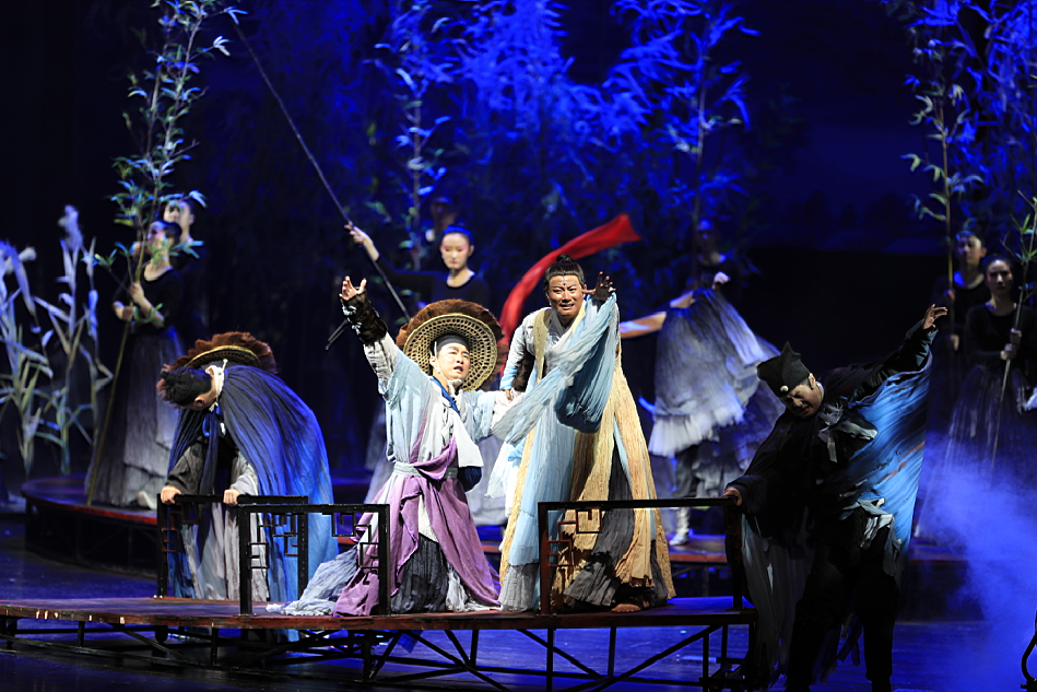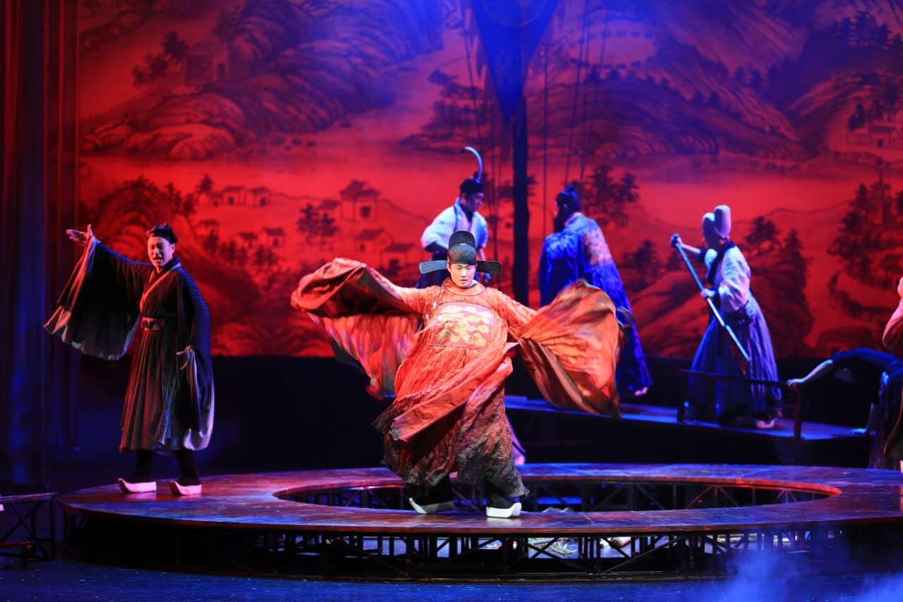 據(jù)導(dǎo)演宮曉東介紹,該劇在舞臺(tái)的呈現(xiàn)上別具風(fēng)格,特別運(yùn)用幾塊可移動(dòng)的平臺(tái)打破傳統(tǒng)的寫(xiě)實(shí)手法,演員們?cè)谏厦婵杀憩F(xiàn)出攀山越嶺、行舟涉水的情景。全劇除了背景音樂(lè),所有的音效如狂風(fēng)、水流、濃霧、雷鳴、鳥(niǎo)鳴等也都是由演員現(xiàn)場(chǎng)制作。劇中還融合了中國(guó)戲曲、古典民樂(lè)、現(xiàn)代舞蹈、民族文化等多種表現(xiàn)元素。另外,觀眾們還能看到演員現(xiàn)場(chǎng)換服裝、候場(chǎng)……這樣的創(chuàng)新,打造出一部極強(qiáng)現(xiàn)代感的歷史劇。在首演結(jié)束后,在場(chǎng)的專(zhuān)家、領(lǐng)導(dǎo)和觀眾們都對(duì)該劇予以一致好評(píng)。