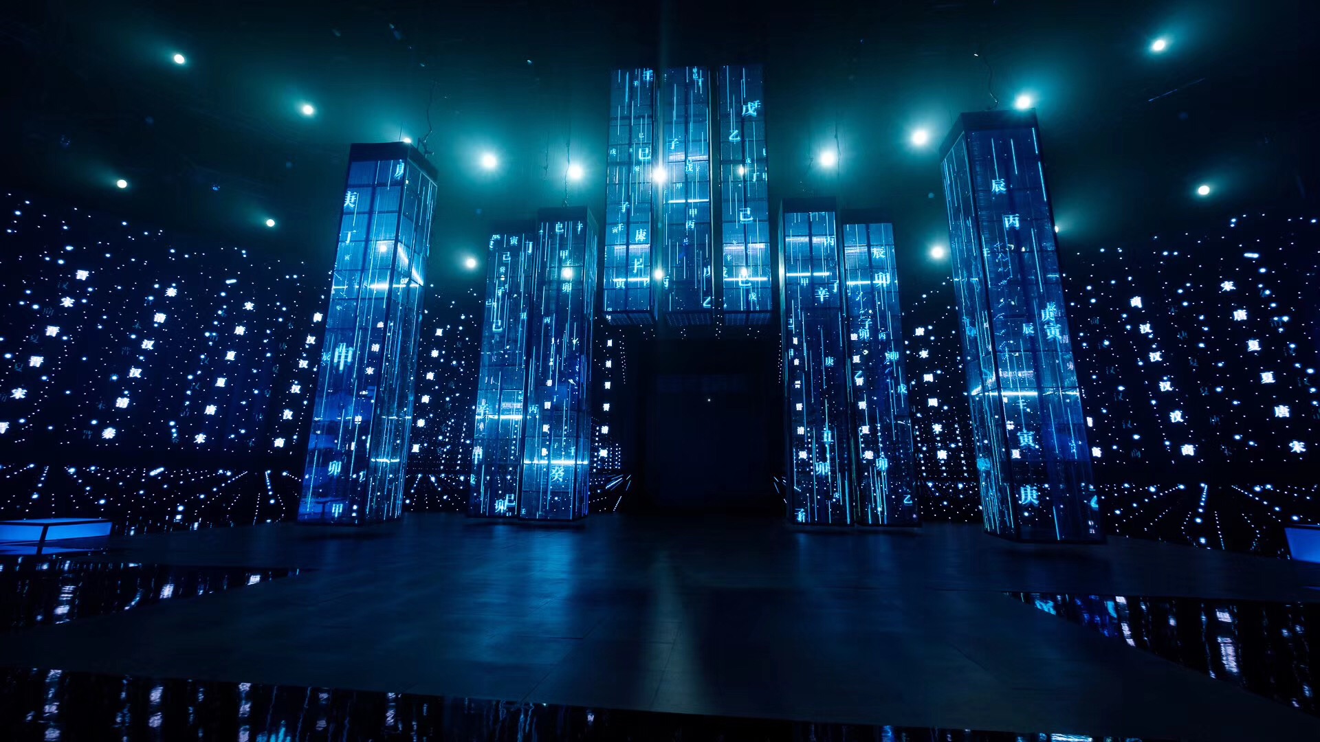 在舞美方面,《國家寶藏》節(jié)目組特別將所有舞臺(tái)主視覺都設(shè)置在一塊長43米、高7米的巨型LED環(huán)幕上,讓觀眾在見不到國寶實(shí)物的情況下也能以直觀的感受體驗(yàn)到國寶的震撼美。在整個(gè)舞臺(tái)的設(shè)計(jì)上,節(jié)目組將中國古典韻味和現(xiàn)代舞臺(tái)科技相結(jié)合,融合紗盒投影視覺呈現(xiàn)、透視冰屏柱視覺呈現(xiàn)、透視冰屏柱臺(tái)型變幻、巨型環(huán)幕視覺呈現(xiàn)四大特點(diǎn)于一體。在場景環(huán)境的構(gòu)建與更替上都呈現(xiàn)出精致逼真的舞臺(tái)效果,這種舞臺(tái)視覺上的極致沖擊力也成為節(jié)目吸引眼球的一大亮點(diǎn)。