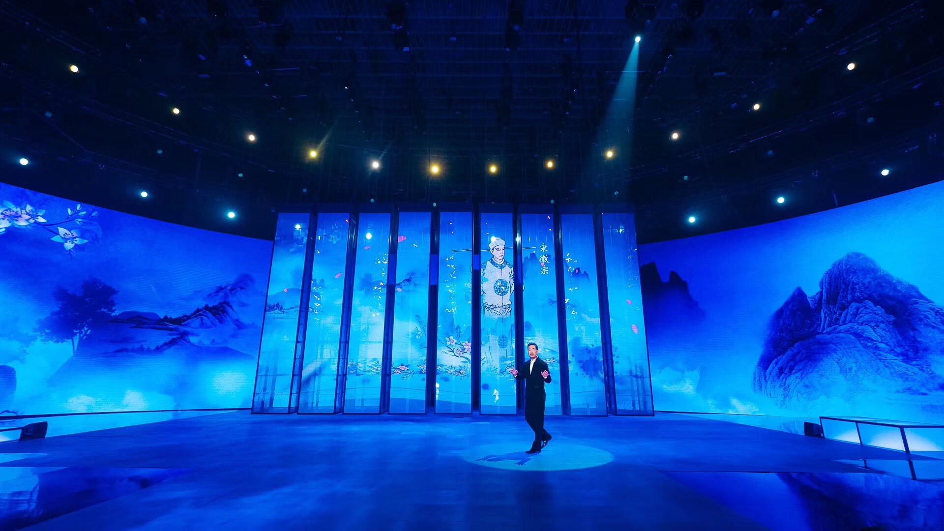 舞美設(shè)計(jì)簡約不簡單,通過燈光變幻營造出五千年時(shí)空重疊,古今碰撞的文化磁場。