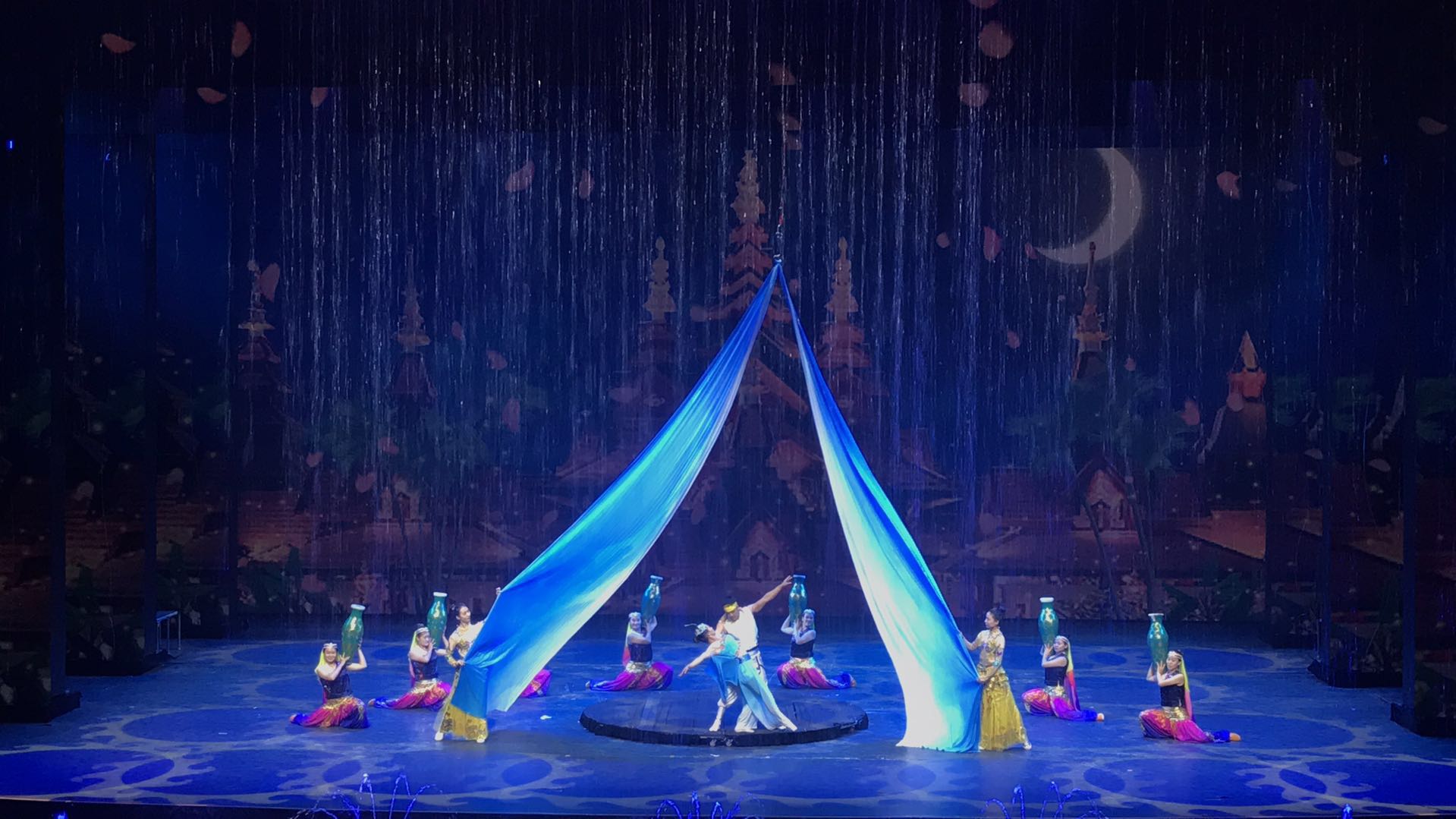 大型情景雜技劇《江湖》總導(dǎo)演為邊發(fā)吉老師,視覺導(dǎo)演為劉桐春老師,燈光設(shè)計(jì)為苗壯老師。該劇以“四大江湖”為主要串線(巾:打卦算命,漢:買大力丸,粒:變魔術(shù),摶:說書唱戲),以吳橋雜技?xì)v史為背景,以歌舞、雜技、武術(shù)、時(shí)裝秀、影視特技等藝術(shù)形式和舞臺(tái)燈光美術(shù)相結(jié)合。