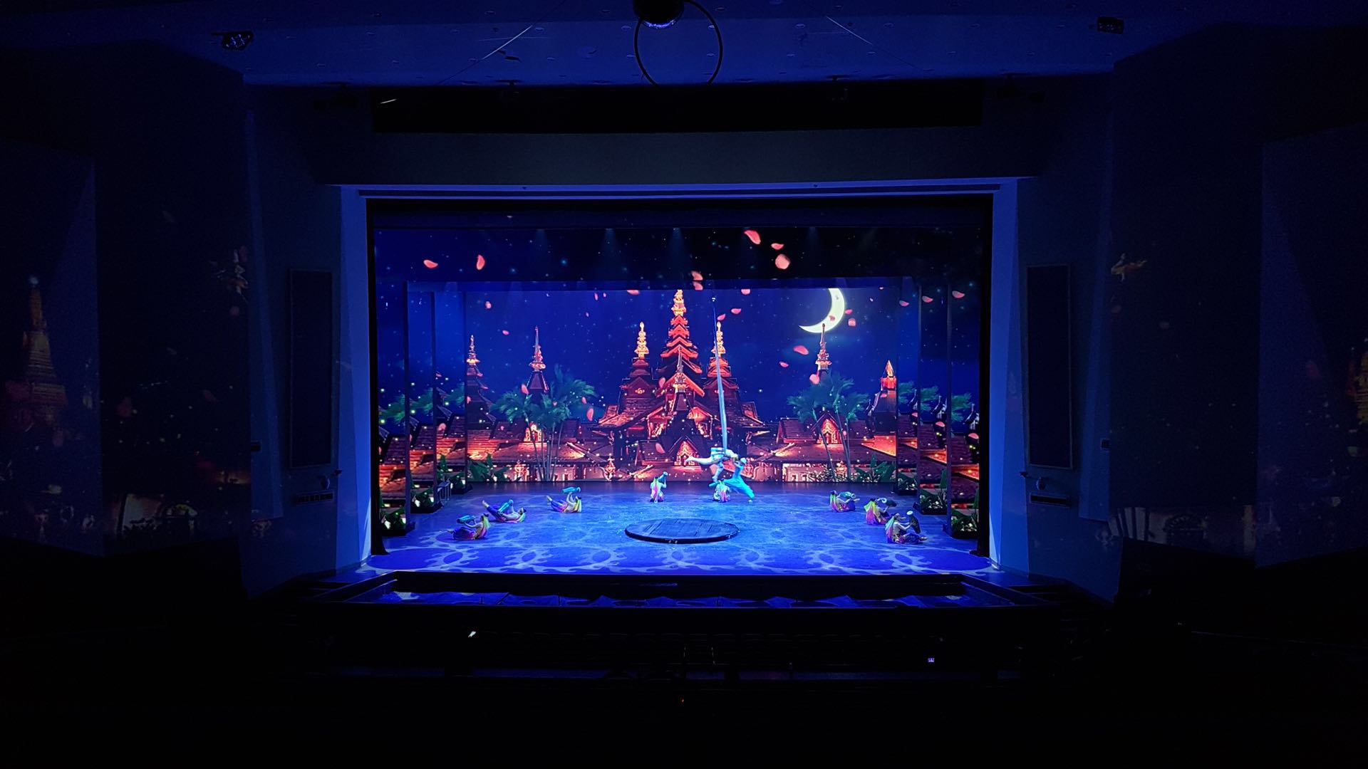 在演出現(xiàn)場(chǎng),浩洋電子的迷幻燈光配合演出橋段將場(chǎng)景從故事中帶到現(xiàn)場(chǎng)觀眾中的眼前。絢麗的舞臺(tái)效果令人震驚,雨雪雷電的實(shí)景、全場(chǎng)旋轉(zhuǎn)的七彩燈光、舞臺(tái)與觀眾席上的激情互動(dòng),一次次將觀眾的情緒帶向高潮。