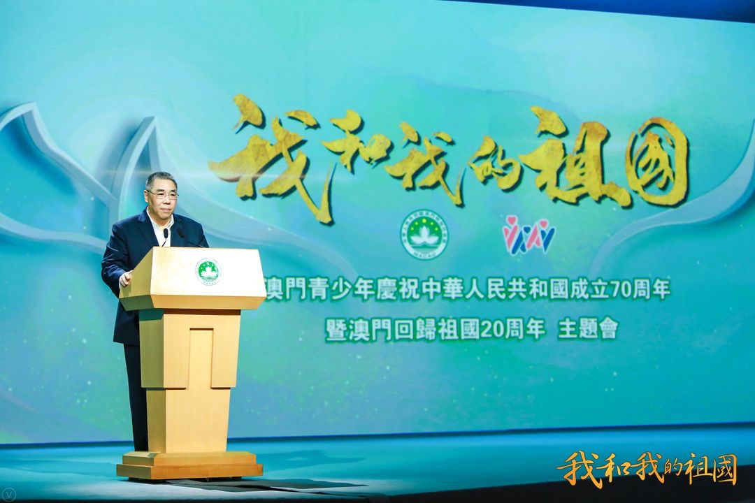 8月3日下午, 為慶祝中華人民共和國成立70周年和澳門回歸祖國20周年,由澳門特別行政區(qū)政府、中央人民政府駐澳門特別行政區(qū)聯(lián)絡辦公室、澳門各界青年組織活動籌備委員會聯(lián)合主辦,教育部、中華全國青年聯(lián)合會共同協(xié)辦的以“我和我的祖國主題會”在澳門綜藝館舉行。
