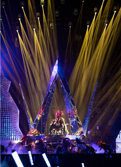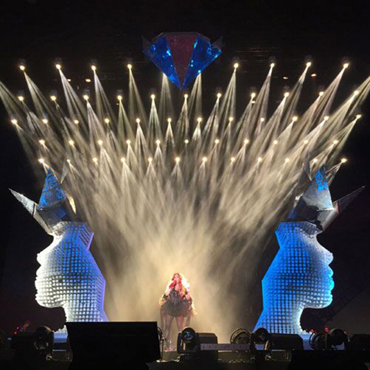 一向?qū)σ魳?lè)有著極致要求的張惠妹團(tuán)隊(duì),在「烏托邦世界巡城演唱會(huì)」中,更是投重金打造世界級(jí)硬件設(shè)備及舞臺(tái)道具。作為打造演唱會(huì)燈光效果的主力武器,浩洋電子轟天炮G10B憑借全球頂級(jí)的高亮度輸出特性、銳利的光束和完美的棱鏡效果,為“烏托邦”現(xiàn)場(chǎng)營(yíng)造了時(shí)而狂野,時(shí)而歡樂(lè)的舞臺(tái)氛圍。而浩洋電子另一款小體積、長(zhǎng)壽命的染色燈PT330W,也用柔和細(xì)膩的CMY均勻渲染效果,令現(xiàn)場(chǎng)似烈果繽紛、如沐幻境。在燈光師的詮釋之下,二者光束與染色交融演繹,使整個(gè)巡演舞臺(tái)呈現(xiàn)出靈動(dòng)、華麗的光影視覺,讓歌迷獲得極具沖擊力的感官體驗(yàn)。數(shù)十場(chǎng)演出下來(lái),由浩洋燈光營(yíng)造的超震撼視覺效果,無(wú)疑成為「張惠妹2015烏托邦世界巡城演唱會(huì)」的最大亮點(diǎn)之一。