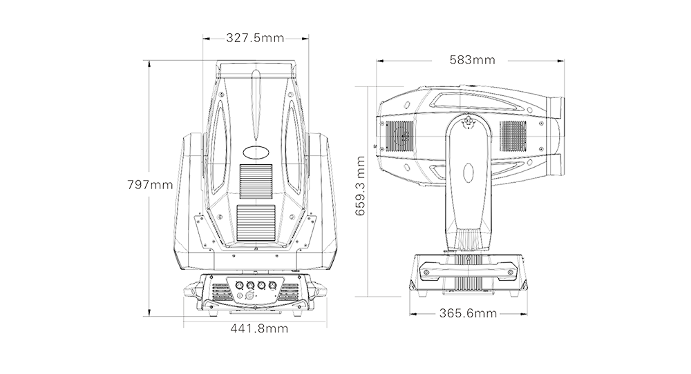 可從控臺完成更改DMX地址碼,遙控開關燈泡,機器重設,聲控模式的轉換等功能