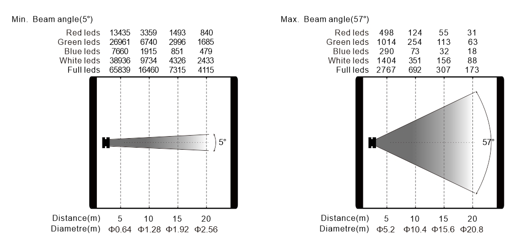 變焦范圍:5°- 57°(光束角)