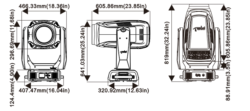 切割盤:一組由4個切角片組成可控制的光斑切角系統(tǒng),整個切角系統(tǒng)可做±90°旋轉(zhuǎn)