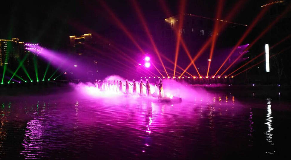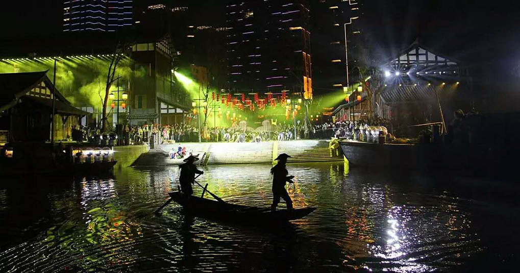 《夢回穿紫河》是由湖南省演藝集團(tuán)與經(jīng)山水公司共同整合相關(guān)資源,并集合國內(nèi)最優(yōu)秀的編創(chuàng)團(tuán)隊(duì),歷時半年,精心打造的湖南首臺城市風(fēng)情實(shí)景燈光演出秀。浩洋電子傾力參與打造,承擔(dān)了從系統(tǒng)設(shè)計(jì)、設(shè)備供應(yīng)、安裝實(shí)施、彩排合成到技術(shù)服務(wù)支持的全部燈光工程內(nèi)容,應(yīng)用浩洋電子旗下特寶麗品牌14R及20R三合一電腦燈、圖案切割燈PT801P、LED PAR燈A59、防水罩WP06等近500臺專業(yè)燈光產(chǎn)品,通過燈光設(shè)計(jì)與演出內(nèi)容的緊密結(jié)合,巧妙地將的唯美絢麗的燈光與旖旎的穿紫河水融為一體,為游客呈現(xiàn)了一場具有濃郁水鄉(xiāng)風(fēng)情及豐厚人文底蘊(yùn)的光影藝術(shù)饗宴?!秹艋卮┳虾印返木适仔?,接連獲得社會各界的高度好評!