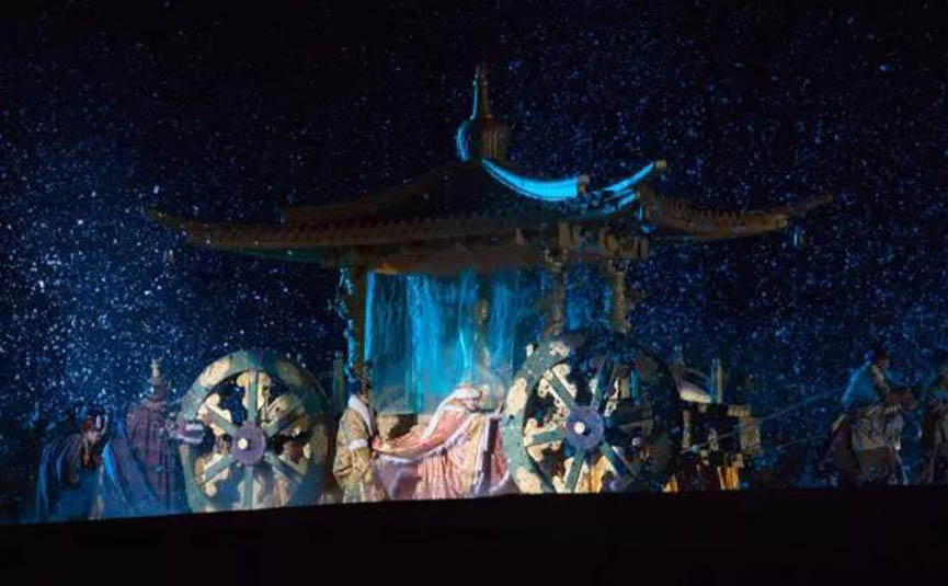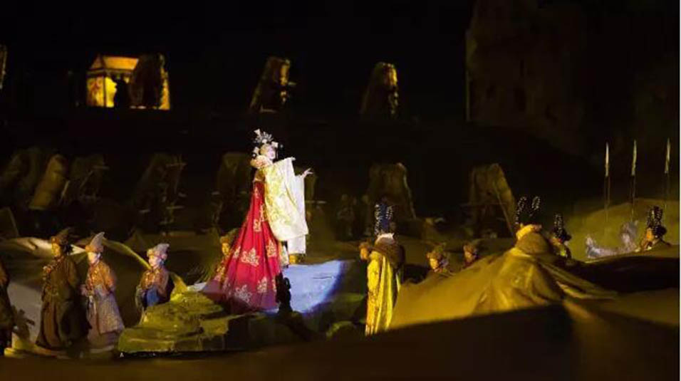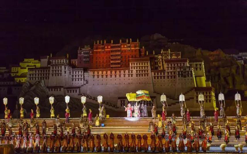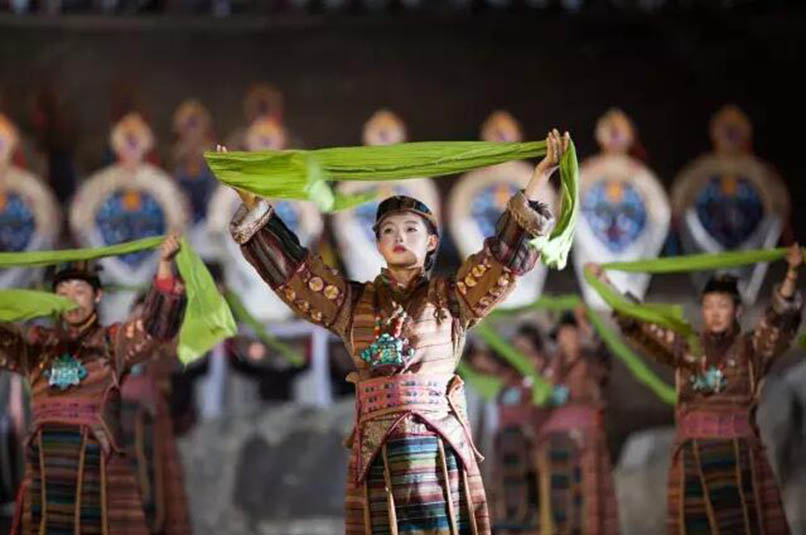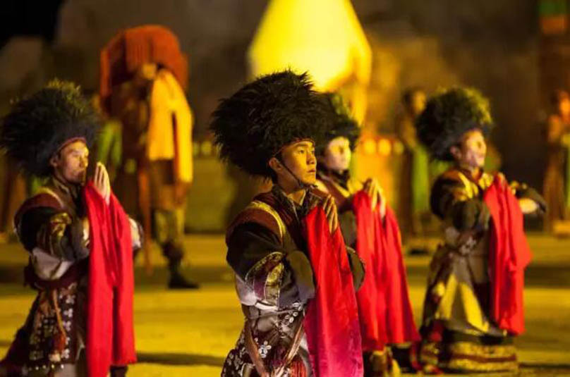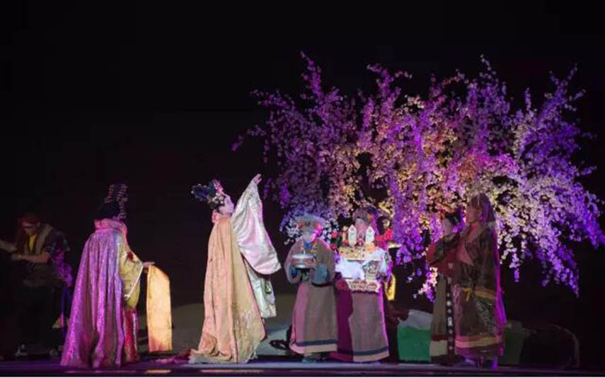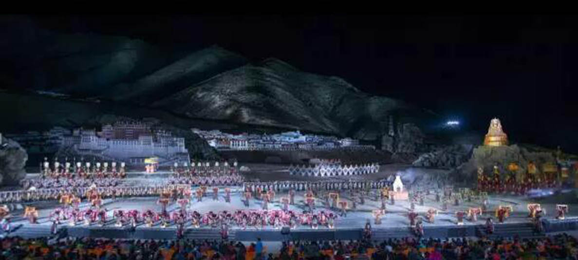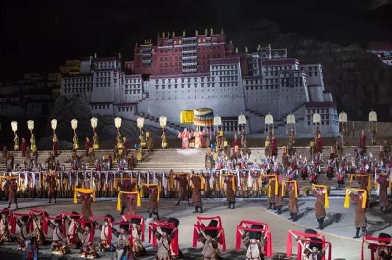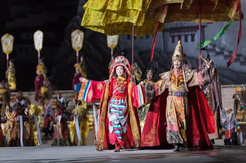 大型藏族實(shí)景劇《文成公主》主要講述文成公主入藏歷經(jīng)艱難的征途和曲折起伏的心路歷程,演繹大唐盛世的愛情傳奇,傳唱漢藏和美的動(dòng)人史歌。該作品分為“大唐之韻”、“天地梵音”、“藏舞大美”、“藏舞大美”及“藏舞大美”五幕,深度融入漢藏歷史文化、民族風(fēng)俗、自然景觀等,引入了大唐歌舞和流傳久遠(yuǎn)的藏舞、藏戲、佛號(hào)念唱等,通過人工舞臺(tái)與自然山水的結(jié)合,用高科技的手段呈現(xiàn)非物質(zhì)文化遺產(chǎn),把戲劇、音樂、舞蹈和現(xiàn)代舞美手段融為一爐,構(gòu)成華美樂章。