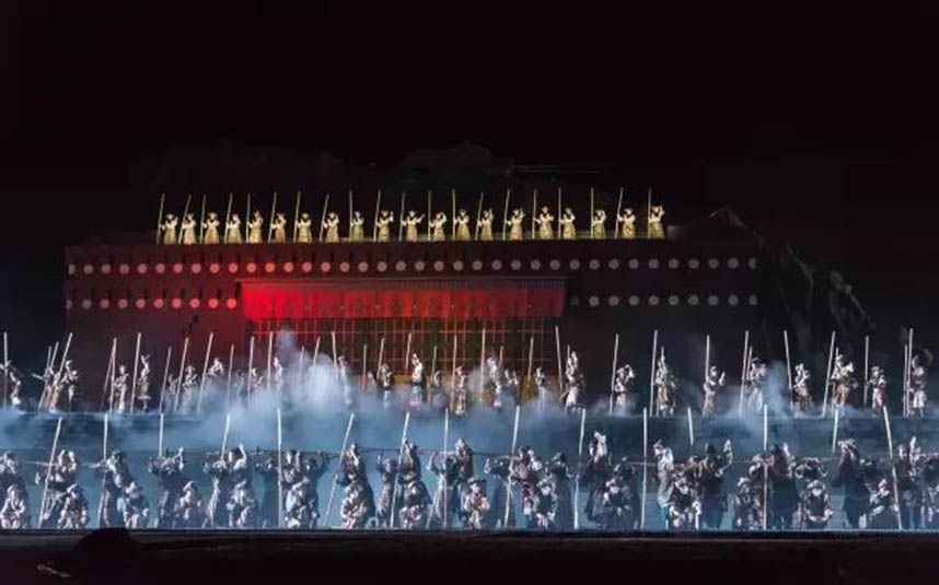 《文成公主》 藏文化大型史詩(shī)劇一直在不斷地進(jìn)行創(chuàng)新和升級(jí),在燈光方面,劇組使用更多元化的色彩,營(yíng)造出華美而奇幻的舞臺(tái)效果,并運(yùn)用更多的高科技手段,使演出效果更驚艷、更富有傳奇色彩。例如在文成公主碎寶鏡這一段,將通過特殊的舞美燈光設(shè)備,將寶鏡摔在地上的場(chǎng)景表現(xiàn)得更逼真,寶鏡碎片飛起來(lái)的場(chǎng)景,也能夠通過高科技表現(xiàn)出來(lái),現(xiàn)場(chǎng)感更強(qiáng)。