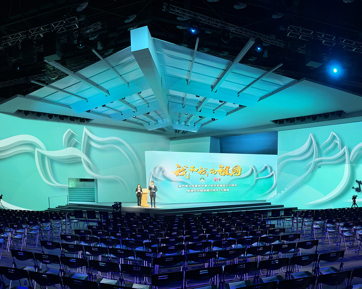 全國政協(xié)副主席何厚鏵,澳門特別行政長官崔世安,中央政府駐澳門聯(lián)絡辦公室主任傅自應等嘉賓及澳門“新時代同心行”參訪團全體人員,政府和社會各界代表約3000人出席現(xiàn)場。主題會以視頻短片、合唱表演、嘉賓演講、青年分享等形式,展示了新時代澳門青少年對愛國主義精神的理解。會場氛圍熱烈,場面簡約大氣,這場主題會由燈光設(shè)計師王喆等主創(chuàng)以春晚的高標準水平進行設(shè)計編排。在主題會中,浩洋電子提供了全能王三合一電腦燈G21 HYBRID 141臺和切割燈V3000P 58臺助力會議的成功開展,讓愛國精神點亮新時代前進之路。