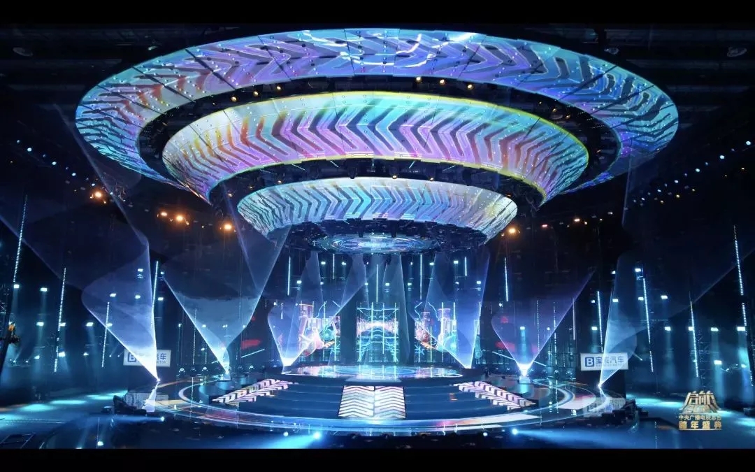 這次盛會(huì)的燈光設(shè)計(jì)圍繞“啟航·看中國”主題設(shè)計(jì)出一艘360度的太空飛船,燈光設(shè)計(jì)在此基礎(chǔ)上將太空飛船進(jìn)行了270度的視覺包裹,將主背景設(shè)計(jì)為矩陣燈墻,為舞臺(tái)整體視覺提升高度。