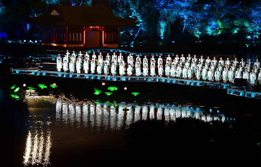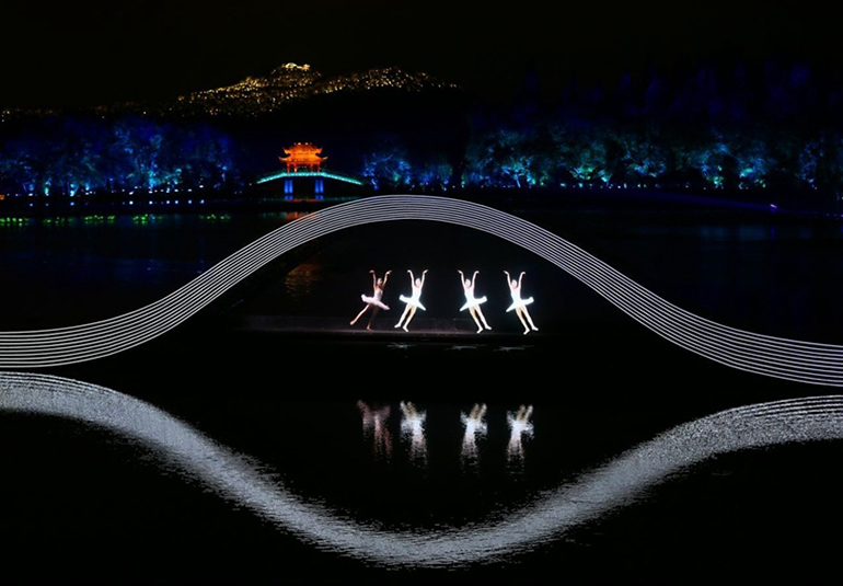 燈光是此次演出的一大亮點(diǎn),晚會(huì)總導(dǎo)演張藝謀說(shuō):“50分鐘的演出我們有100個(gè)以上的燈光變化,要靠燈光、湖水倒景、月色等方方面面?zhèn)鬟f出詩(shī)情畫(huà)意?!弊鳛?008年北京奧運(yùn)會(huì)開(kāi)閉幕式燈光總設(shè)計(jì)、2014年APEC歡迎晚宴活動(dòng)燈光創(chuàng)意總監(jiān),此次G20峰會(huì)文藝演出的總制作人沙曉嵐,用燈光對(duì)西湖的山、水等自然元素進(jìn)行藝術(shù)再創(chuàng)作,勾勒一幅驚艷世界的視覺(jué)美景。