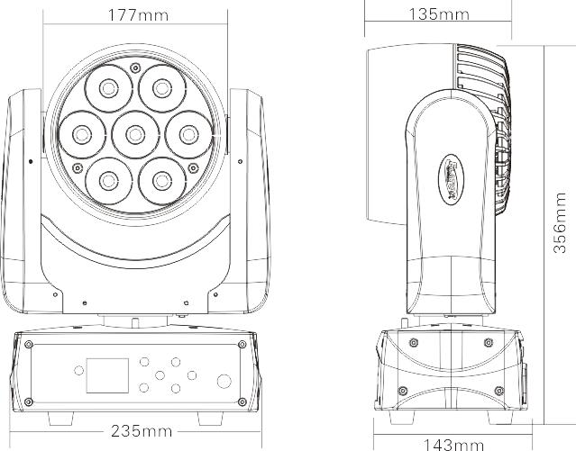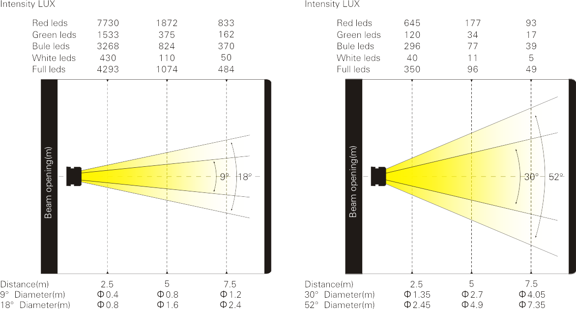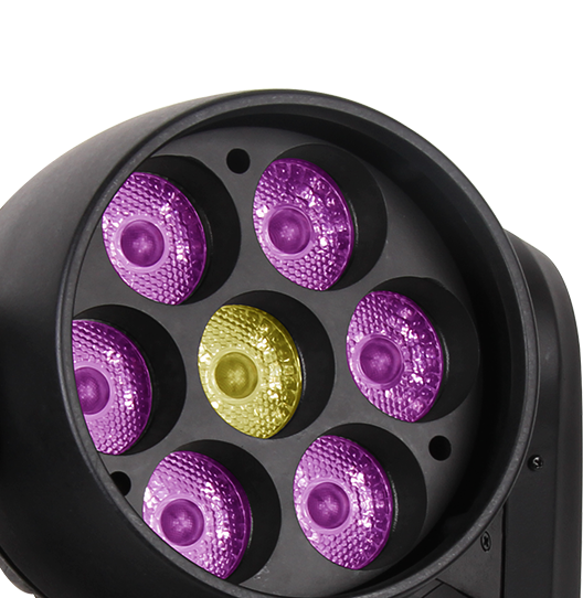 LED類型:7顆15W大功率RGBW 4合1 LED, 達(dá)到均勻細(xì)膩的混色效果