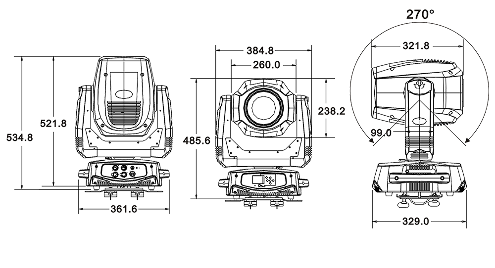 可從控臺完成更改DMX地址碼,遙控開關(guān)燈泡,機器重設(shè),聲控模式的轉(zhuǎn)換等功能