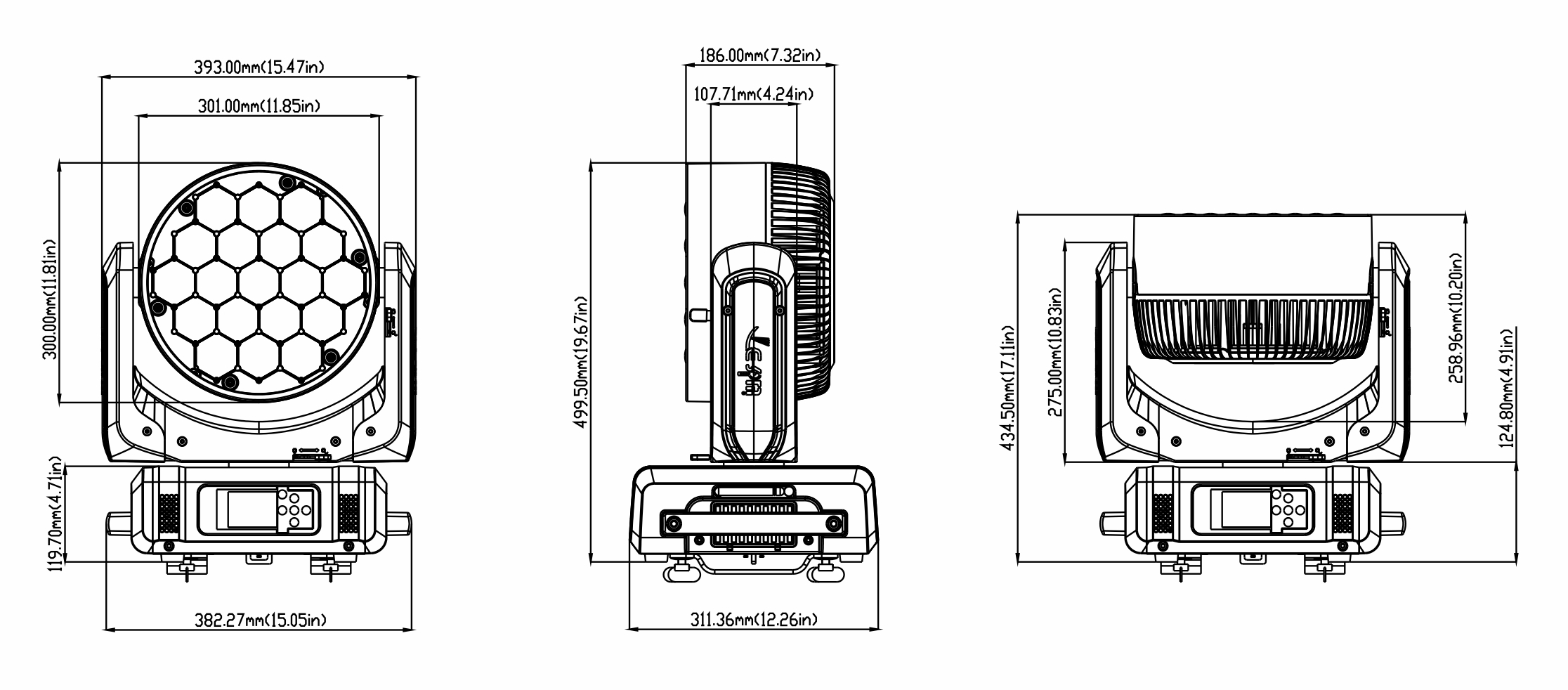 可從控臺(tái)完成更改DMX地址碼, 遙控LED, 機(jī)器重設(shè)等功能