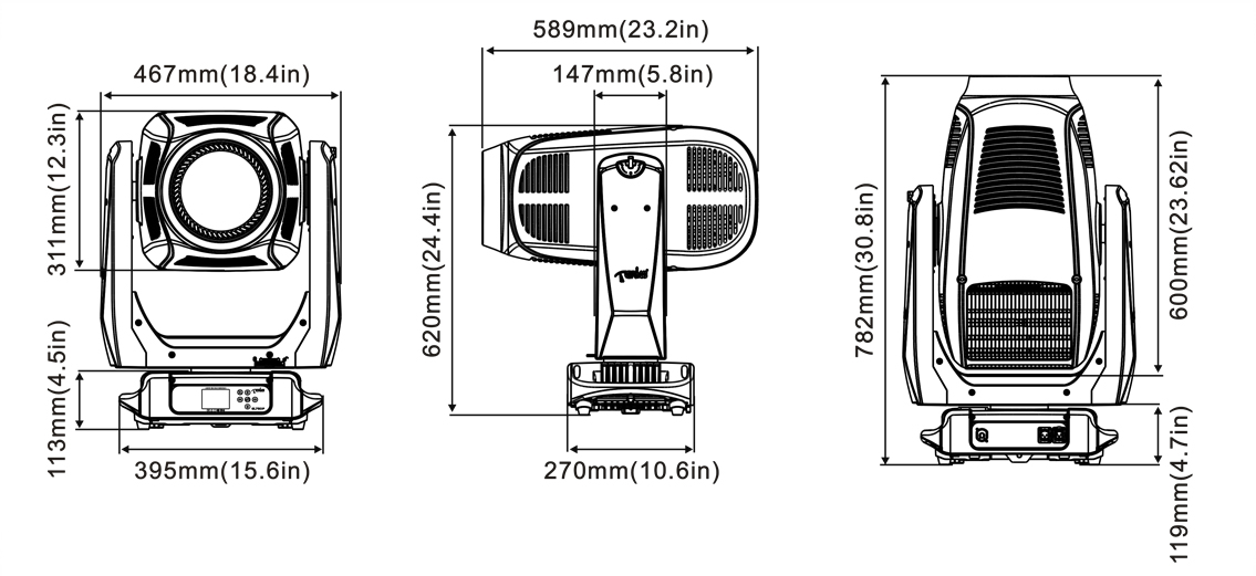 可從控臺完成更改DMX地址碼,機(jī)器重設(shè)等功能