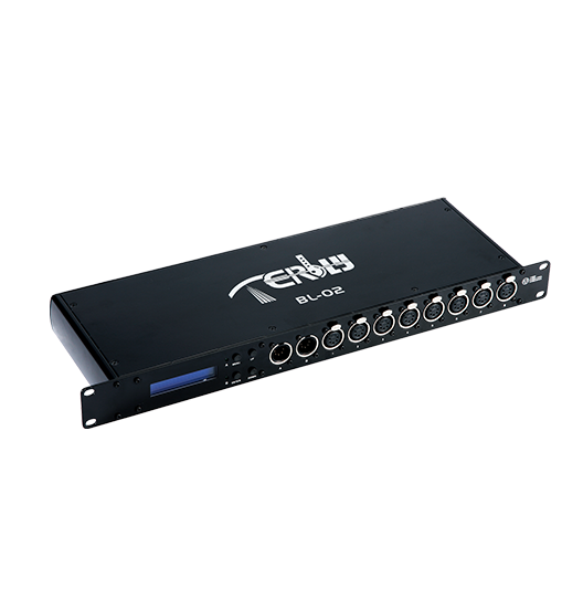 信號從A、B兩個信號端口輸入,可以轉置為由8個單獨輸出端口或4個一組的兩組輸出端口的DMX512標準信號通道,而且具備加強放大信號的功能。