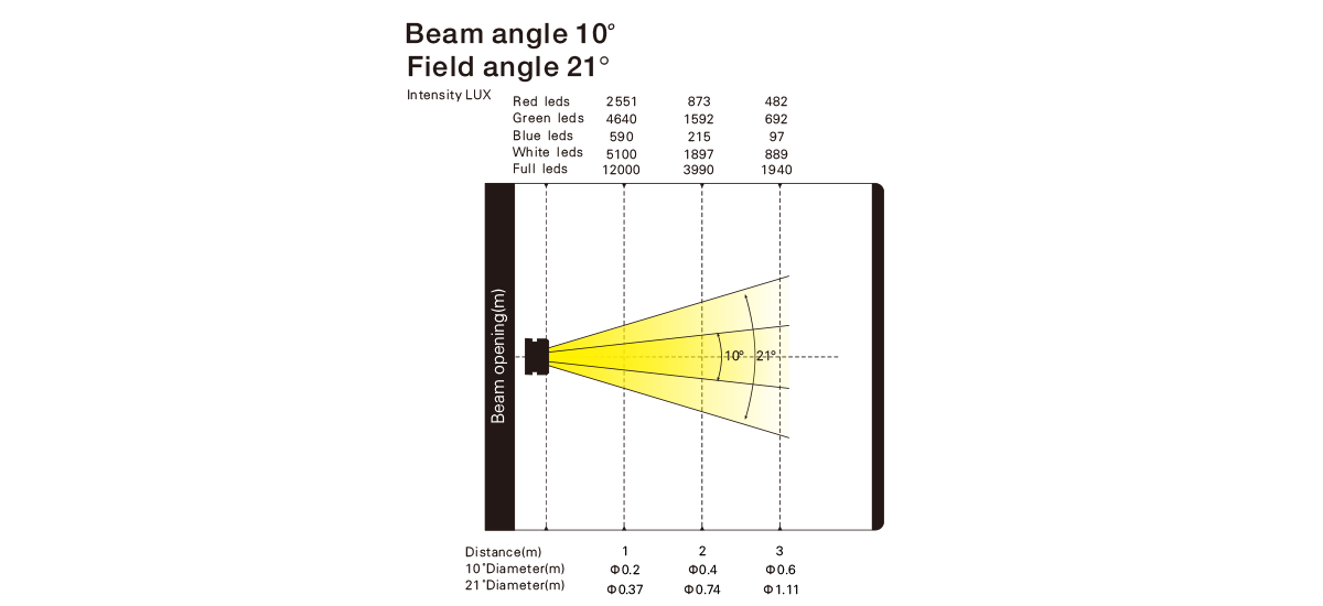 LED類型:8顆10W大功率RGBW 4合1 LED,達到均勻細(xì)膩的混色效果