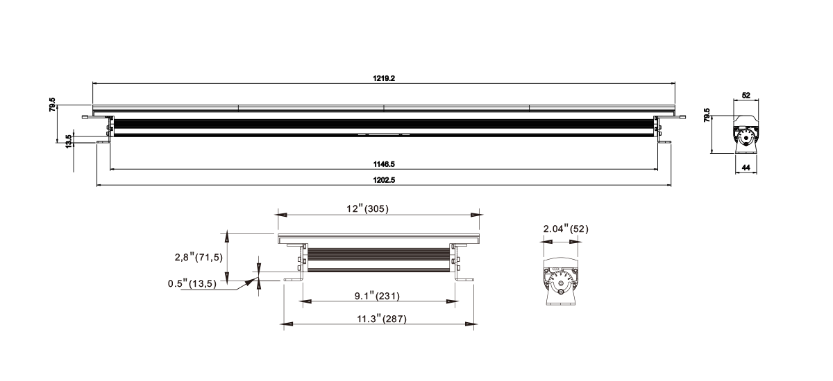 尺寸: 52mmx71.5mmx305mm/1219.2mm